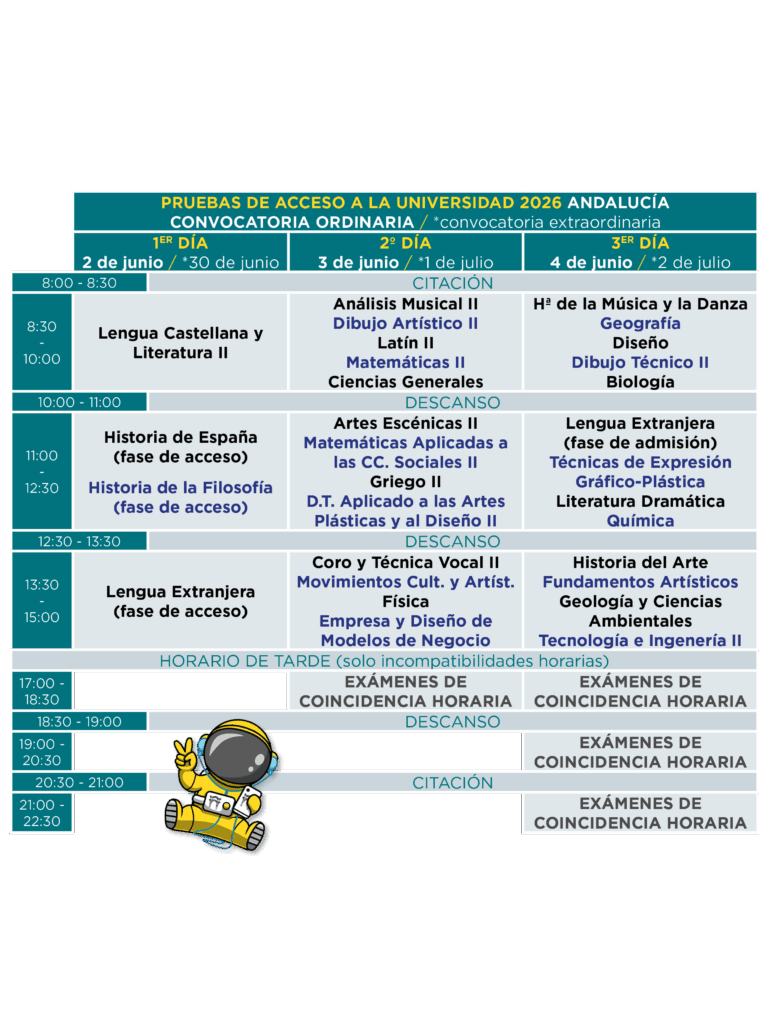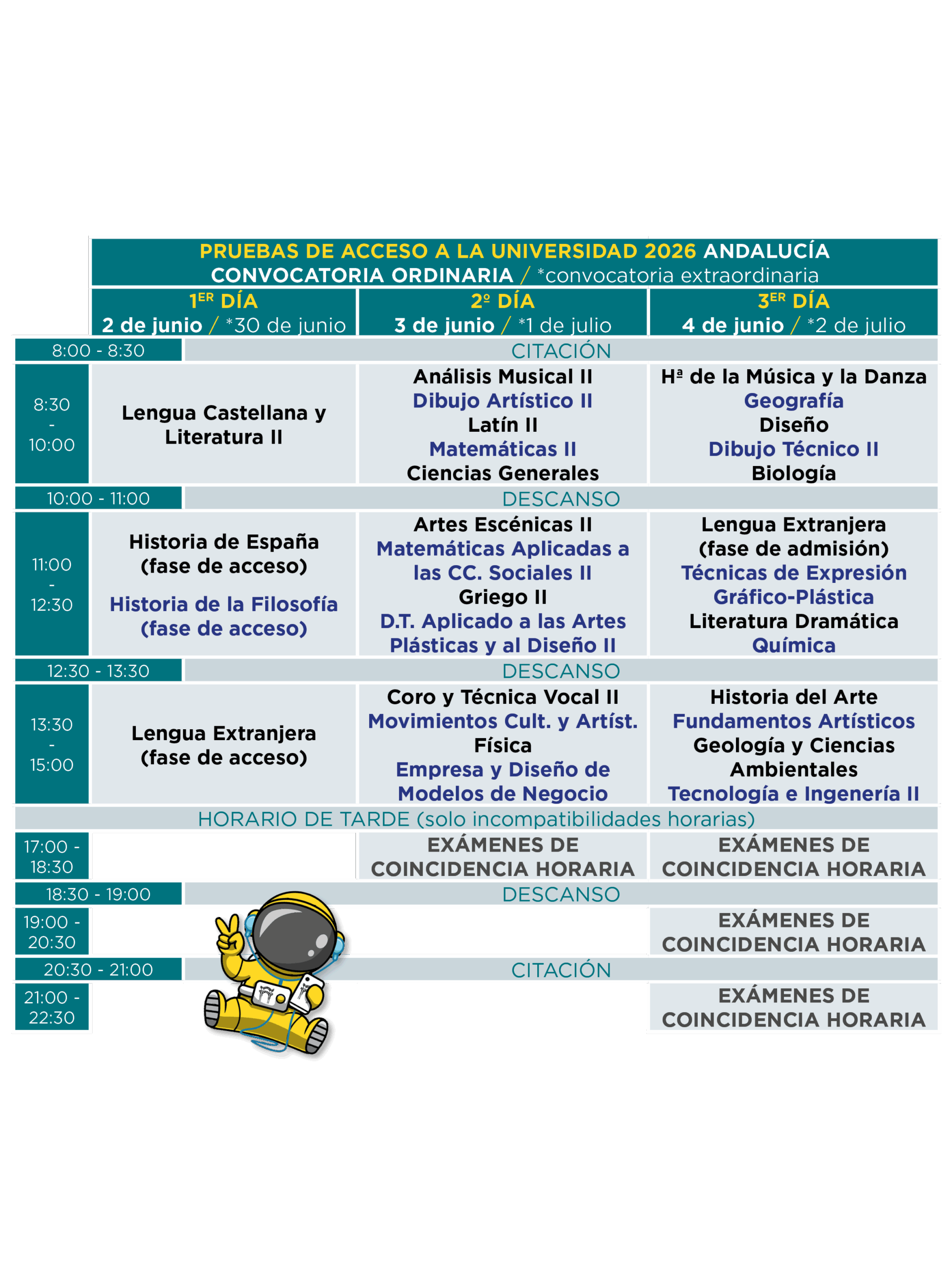 Sujeto a cambios y acordado por la Comisión Coordinadora Interuniversitaria de Andalucía.